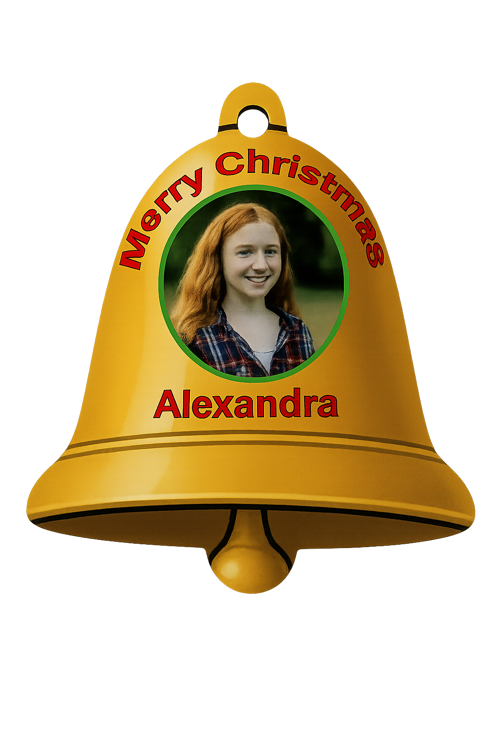 Add a personal touch to your festive decorations with this charming double-sided, dye-sublimated Christmas bell ornament. Crafted from durable, this custom ornament features your childs faces, along with their names, beautifully printed beneath.