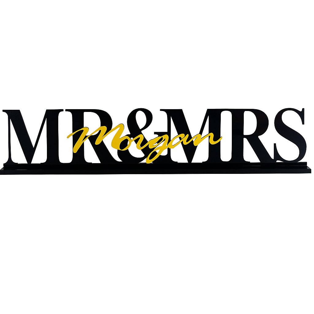 3D acrylic personalised Mr and Mrs standing desk plaque