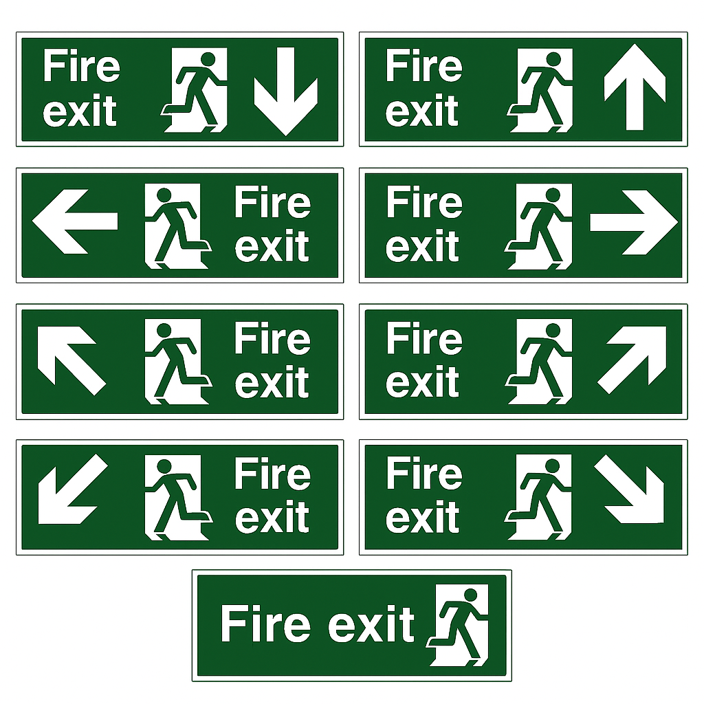 Green Fire Exit Signage Acrylic or Vinyl Sign Sticker Safety various sizes
